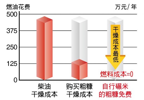 改买粗糠来干燥,干燥成本约只有柴油的1/4,若采用自行碾米的免费粗糠当燃料,则燃料成本为0。