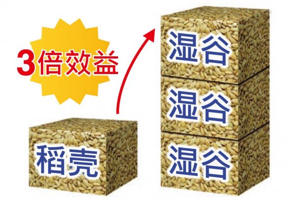 1公吨湿谷产生的稻壳,约可干燥3公吨的湿谷