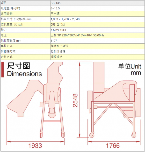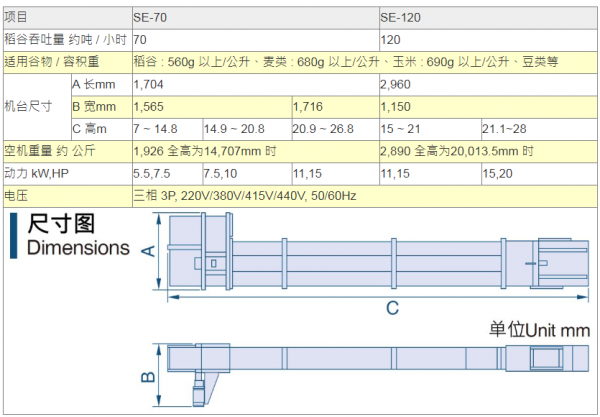 ●以上所列之吞吐量,是以稻谷容积重:1公升=560公克以上、小麦容积重:1公升=680公克以上 、玉米容积重:1公升=690公克以上为测定基准。
