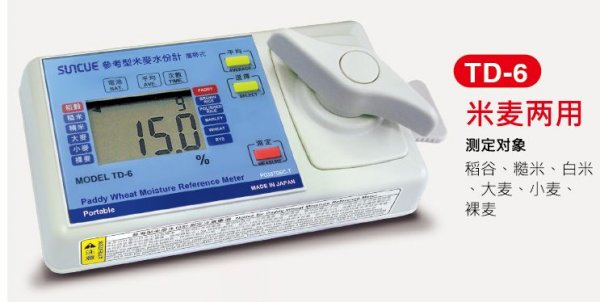 ●测定注意事项:本水份计采用日本检量线,会因地区性、大气温度、相对湿度、谷物品种之不同,所测得之水份会有误差。所以请依当地的国家标准,例如绝干法:5g粉碎的谷物,放入105°C的恒温箱,烘干5小时的作业方法,在当地做出检量线,或配合当地粮管单位的水份计和本水份计做出对照表,再施行测定作业,显示出的水份值再看对照表的实际水份值,即为谷物的正确含水率。
